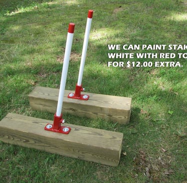 Stake painting service. We can paint your stakes white with red tops for $12.00. We can paint both the hot-rolled and the cold-rolled stakes, but the cold rolled stakes will render a smoother finish, if that's really important to you.