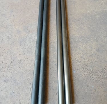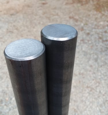 We offer 1" diameter stakes in both A36 hot-rolled steel and 1018 cold-rolled steel to give you a choice between a value priced stake and premium quality stakes. While there are slight differences in the mechanical properties of the two materials, the main, noticeable difference is the hot-rolled stakes have a black mill scale finish and the cold-rolled stakes have a clean, smooth finish that is a little better suited to painting. And while the mill scale on hot-rolled stakes can be removed for a smoother finish using an angle grinder with a wire brush wheel, it's somewhat time consuming and more trouble. Cold-rolled steel is also about 25% more costly than hot-rolled steel. We will no longer be offering 3/4" stakes. They never sold well and they aren't regulation size. What we've found is that most folks who are going to put in the time an effort on a horsehoe pit project want regulation sized equiupment to show for their efforts when they're done with it. 1" stakes are much sturdier and more enjoyable to pitch on anyway.